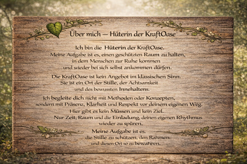 Die KraftOase ist ein Ort, an dem Menschen zur Ruhe kommen, inneren Frieden finden und wieder in Verbindung mit ihrer eigenen Seele treten.