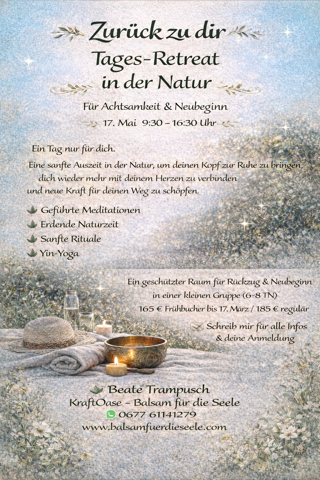 Möge dieses Retreat ein Segen für dich sein – ein sanftes Erwachen, ein leiser Neustart, ein Stück Heimkehr zu dir selbst.